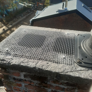 Om kauwennesten in de schoorsteen te voorkomen werd een inox rooster aangebracht.